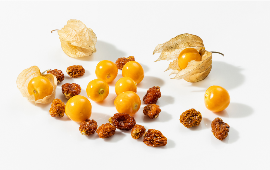 Golden berries support digestive health. Full of vitamins A + C, golden berries strengthen the immune system, provide antioxidants, promote bone health and boost energy levels.